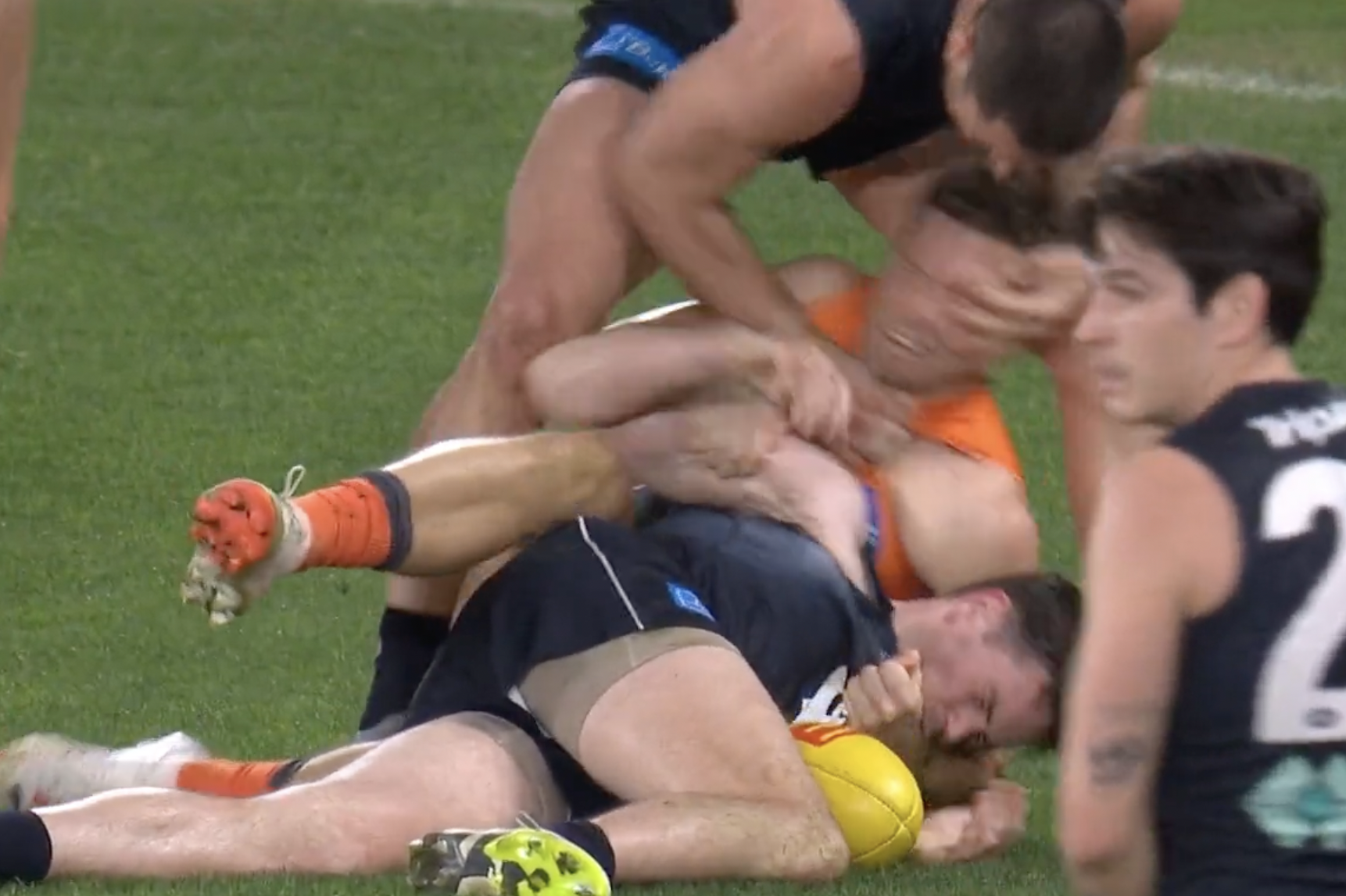 Anything to worry about here for Jacob Weitering after some contact to the face of Toby Greene?