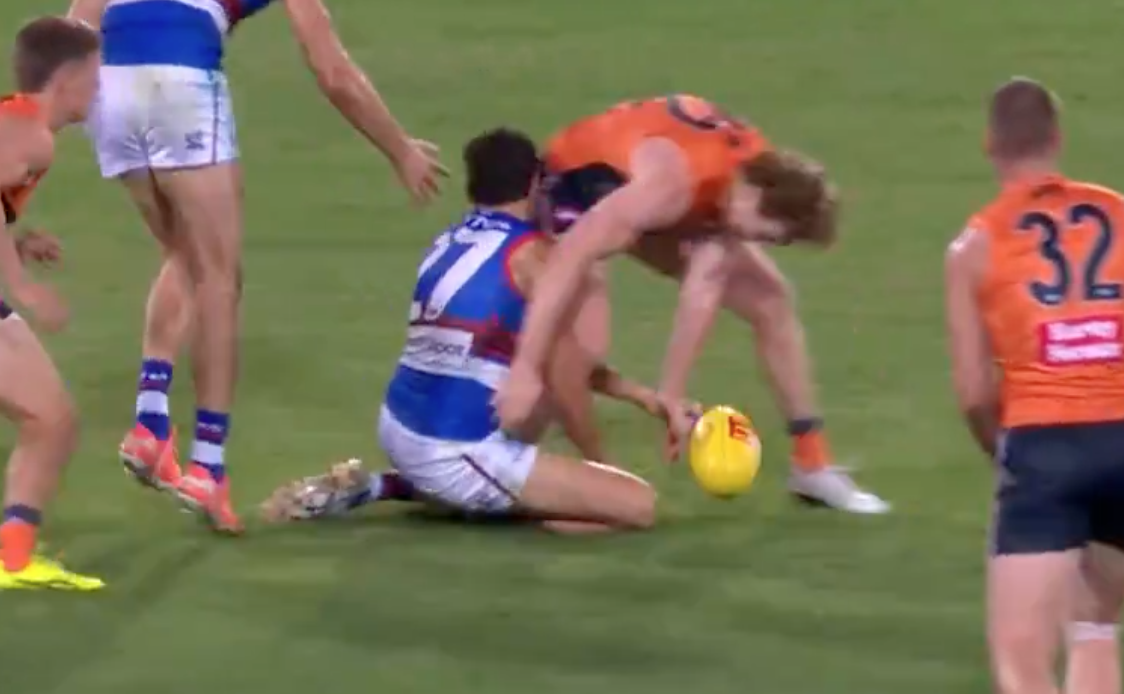 GWS midfielder Tom Green could potentially receive some scrutiny from the Match Review Officer (MRO) after a contentious collision with Western Bulldogs youngster Joel Freijah.