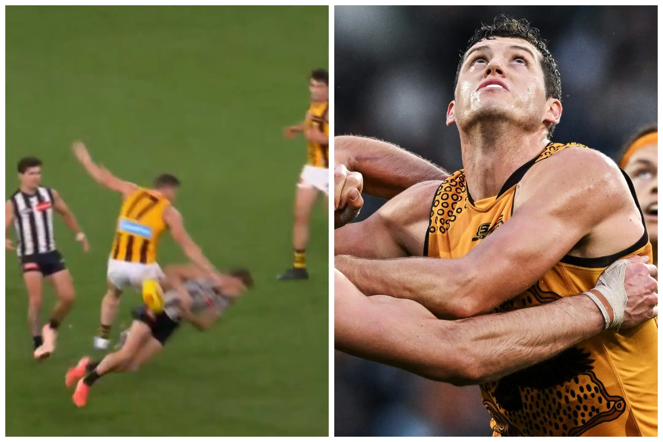 While Meek did not make contact with the head in his late spoil attempt, the force of his momentum rocked Lipinski into the turf, with the Collingwood midfielder hitting his head on the ground, and despite getting up to take his set shot from the goal square, he would eventually be ruled out of the contest with concussion.