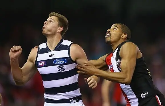 Geelong ruckman Nathan Vardy has finally made the move out west, with the Eagles exchanging pick 72 for the 25-year-old.