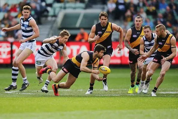However, the 50 metre penalty was not payed and Cotchin's kick into the forward 50 was not marked by a Richmond player and Geelong held on to win the match by a mere four points.