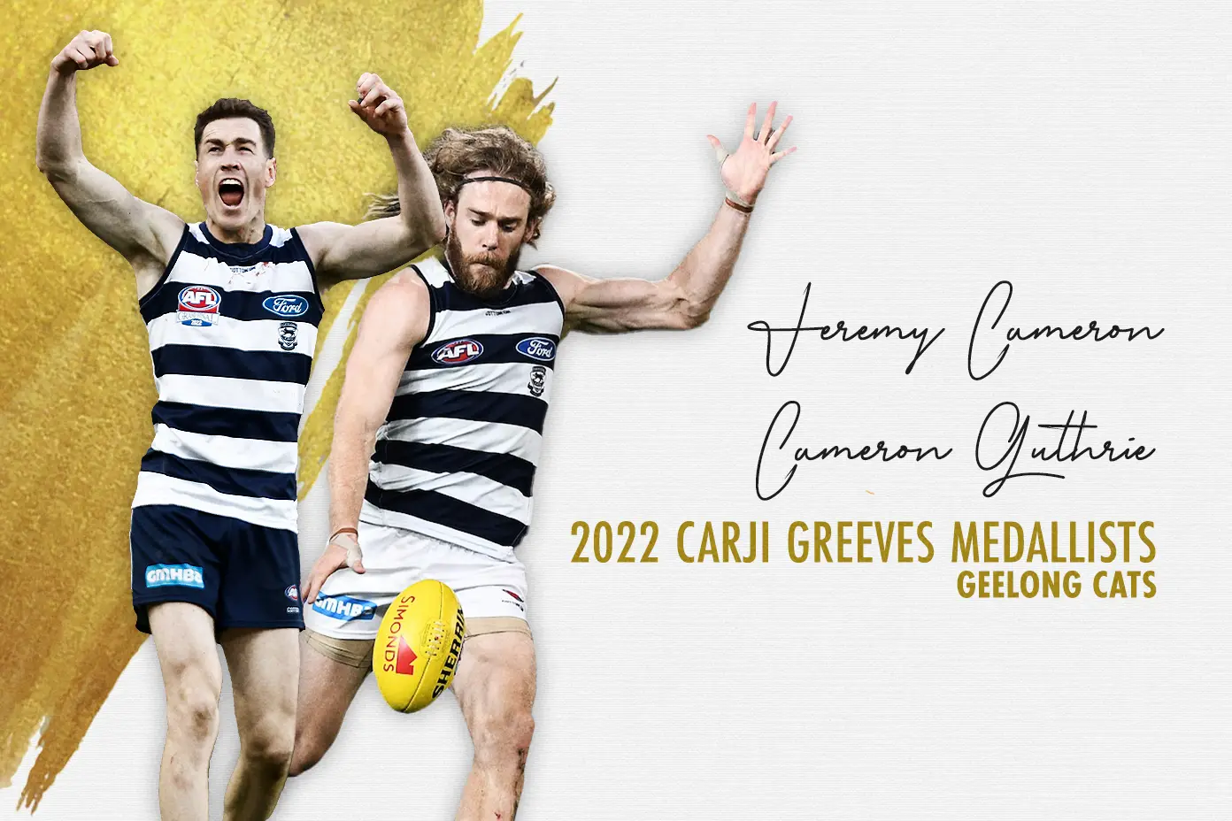 Geelong forward Jeremy Cameron and midfielder Cameron Guthrie have shared the honour of the 2022 Carji Greeves Medal winner as the Cats' best and fairest.