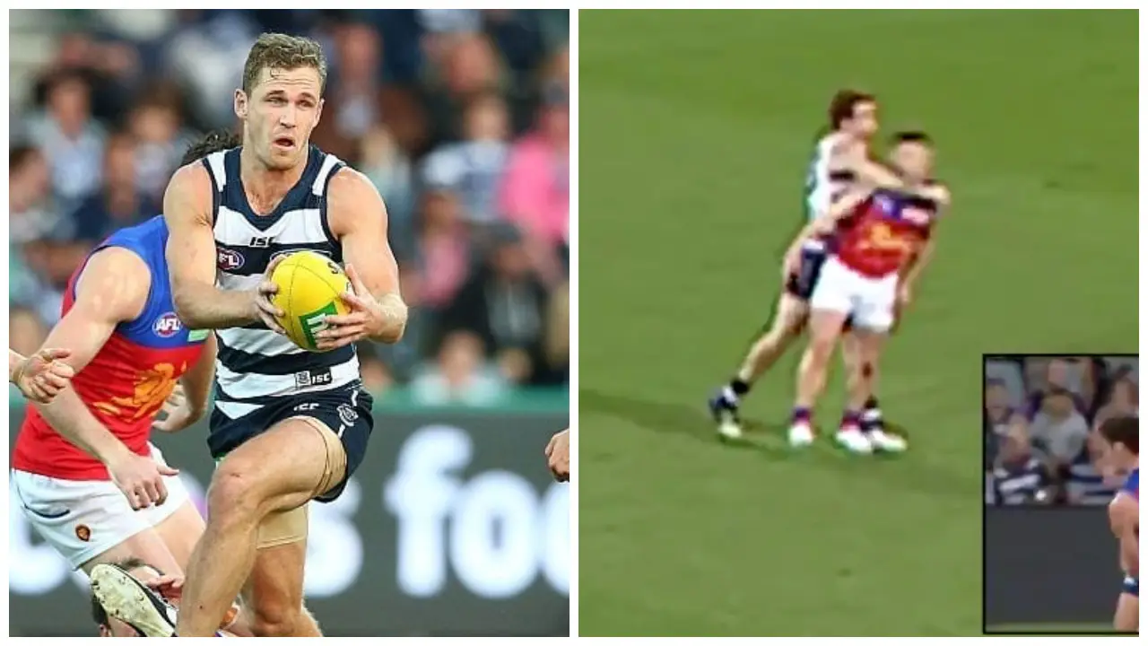 Joel Selwood gave away 50 for a dangerous tackle 😳 pic.twitter.com/rYL7OEw9iI