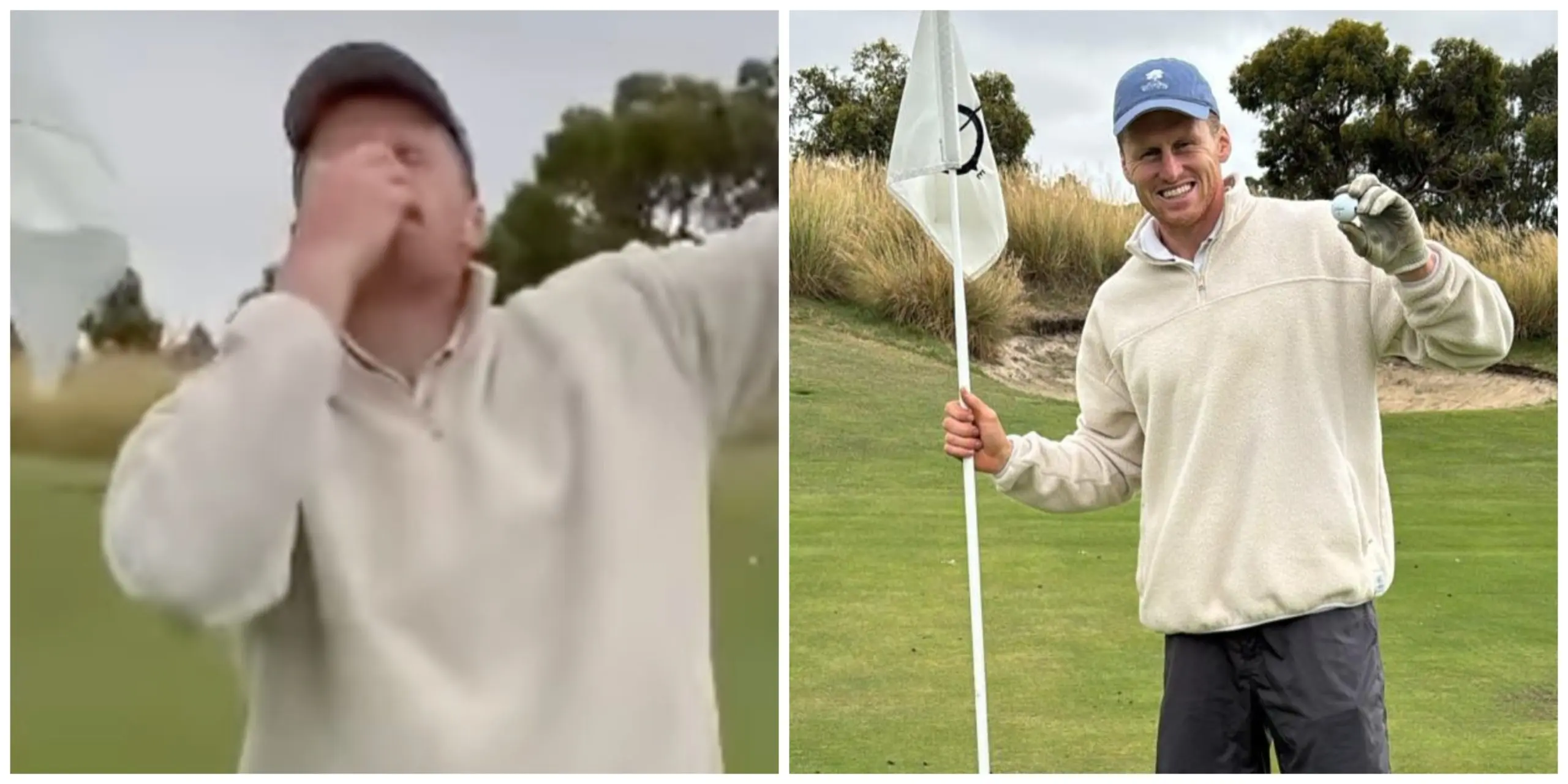 Footage of O'Brien approaching the hole and seeing his ball sunk was quickly met with elation, with the 202cm ruckman evidently happy with his efforts.
