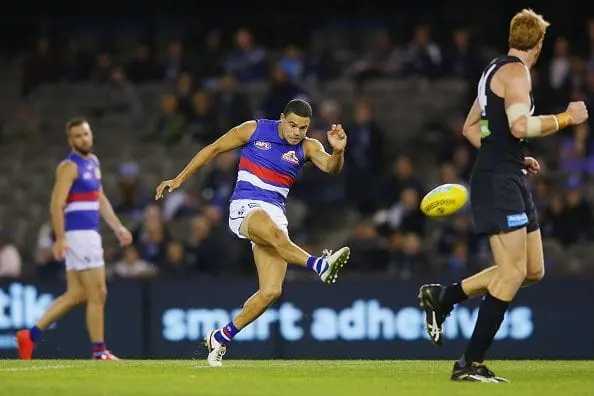 Warning: Kicking goals from outside 50 may result in a hamstring injury 😰 #AFLBluesDogs https://t.co/1COmCrejSo