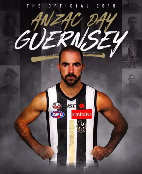 Collingwood have released their ANZAC Day guernsey for 2018, with the Pies going with a nice touch on the front of the top.