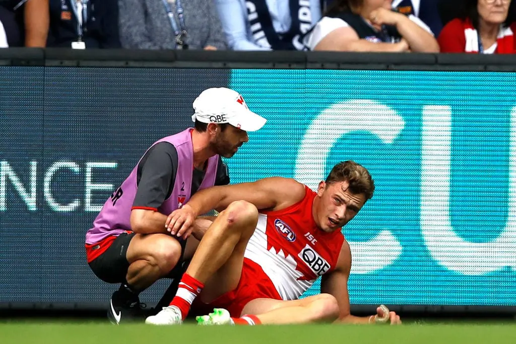 The forward suffered the injury in a heavy collision with Carlton defender Kade Simpson.