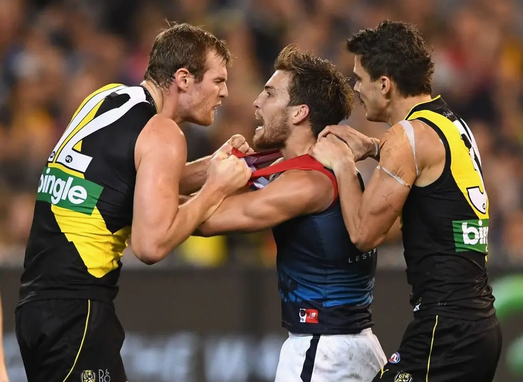 The melee, which also included Tigers' skipper Trent Cotchin, seemed to fire up the yellow and black and King it was an appropriate time for Cotchin to get involved, compared to Viney's wrestles this season, which may have come at poor moments in matches at times this year.
