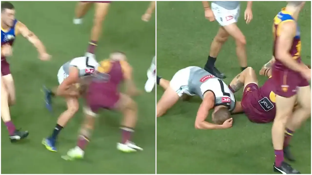 Is Mitch Robinson going to be in trouble for this bump on Xavier Duursma 🤔 🤷♂️ #AFLLionsPower #AFLMRO #AFL pic.twitter.com/VBPj3elmTq