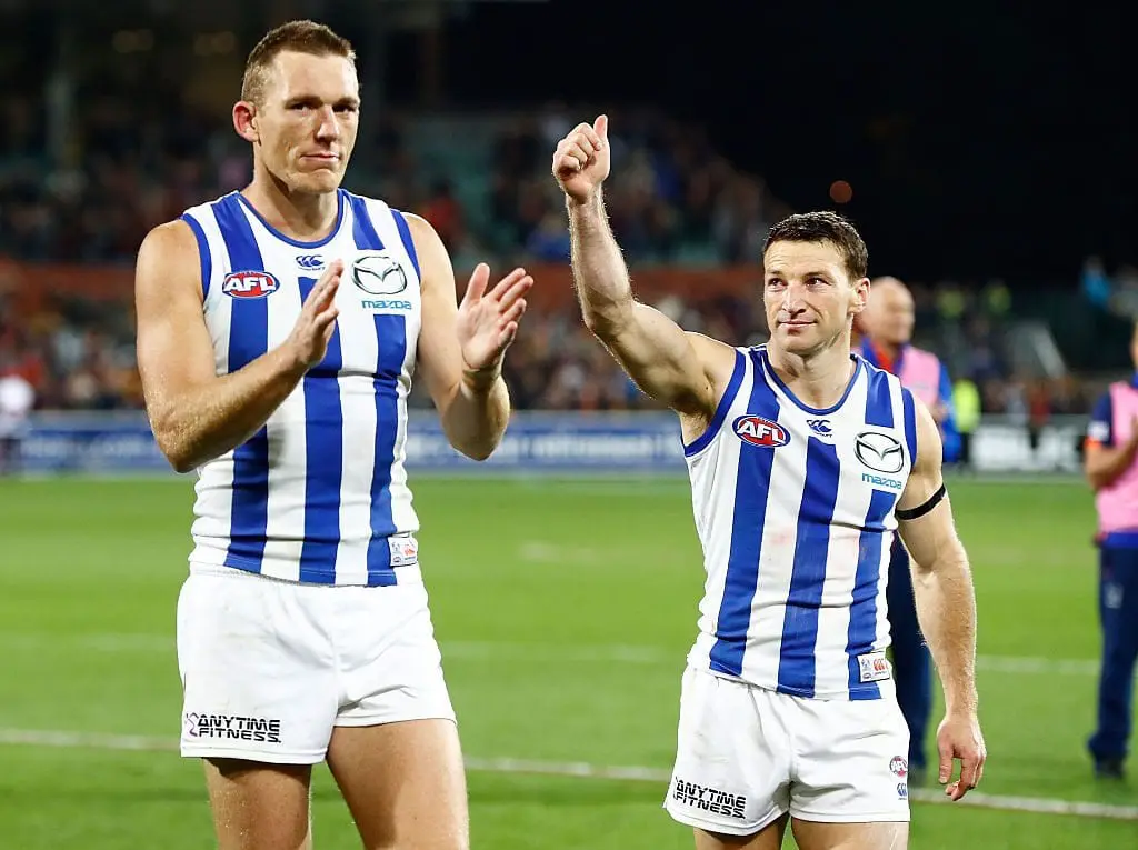 The 316 gamer played every game in 2016 and kicked 428 goals for the Kangaroos in a 16 year career at Arden Street.