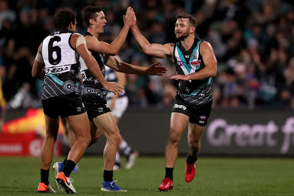 Gray has booted 18 goals this season, and is second among goalkickers at the Power behind Connor Rozee (20 goals).