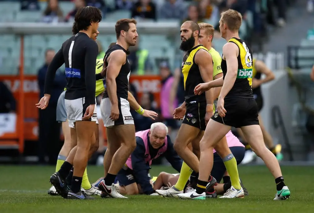 Bachar Houli has been reported for this incident with Jed Lamb. #AFLTigersBlues pic.twitter.com/Yqafn9KxsM