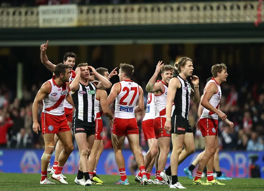 Which young Swan kicked a goal while lying on the ground to help his team steal victory?