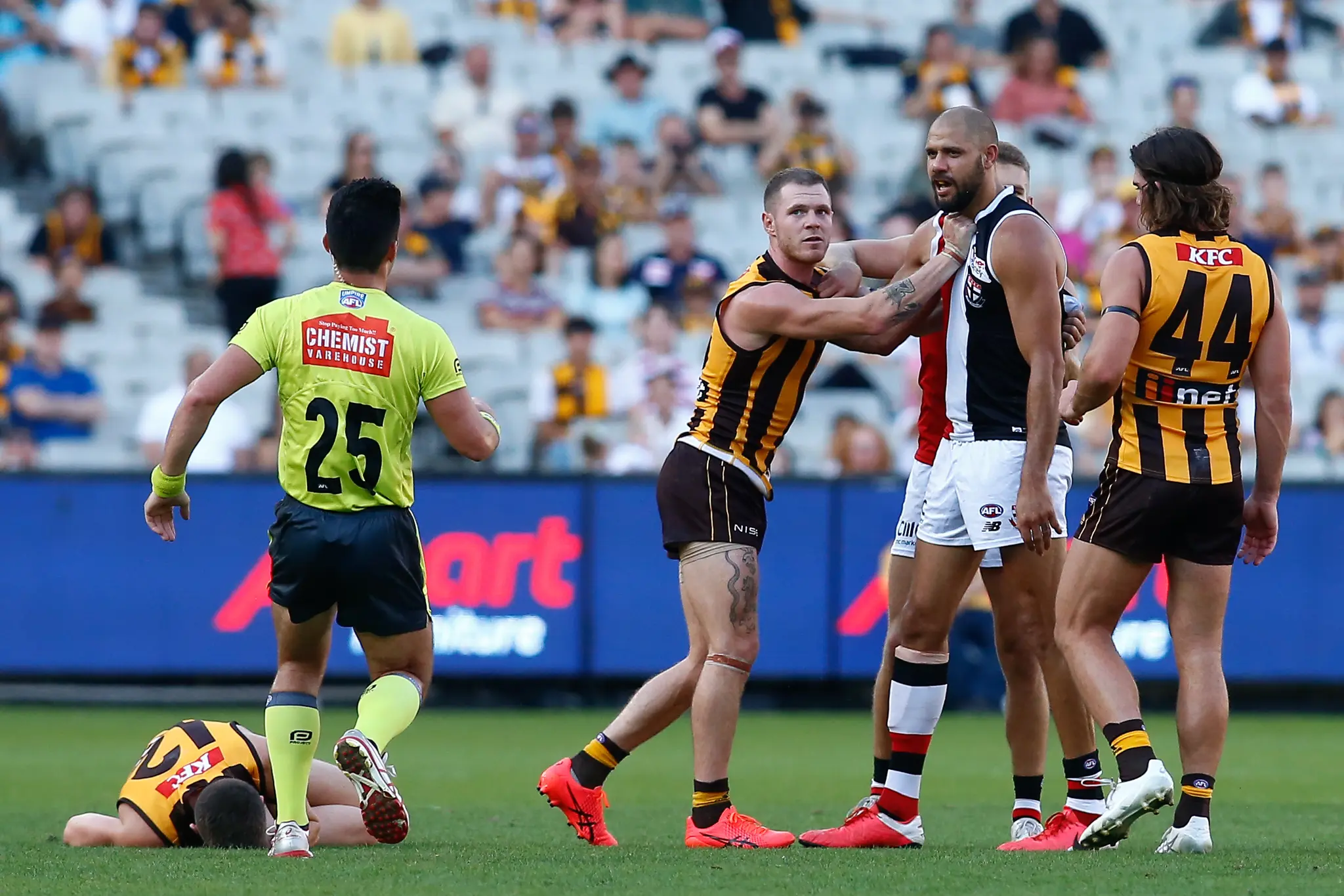 Ryder collided with Day in the third quarter of Sunday's match between the Saints and Hawks at the MCG, with the latter subbed out of the game with concussion as a result of the bump.