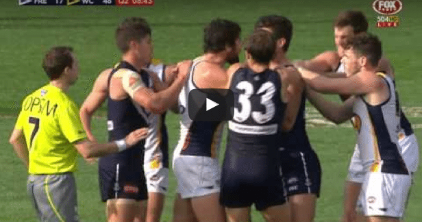 Fremantle's Alex Silvagni faces a lengthy spell on the sidelines after an ugly behind the play hit on West Coast's Jamie Cripps.