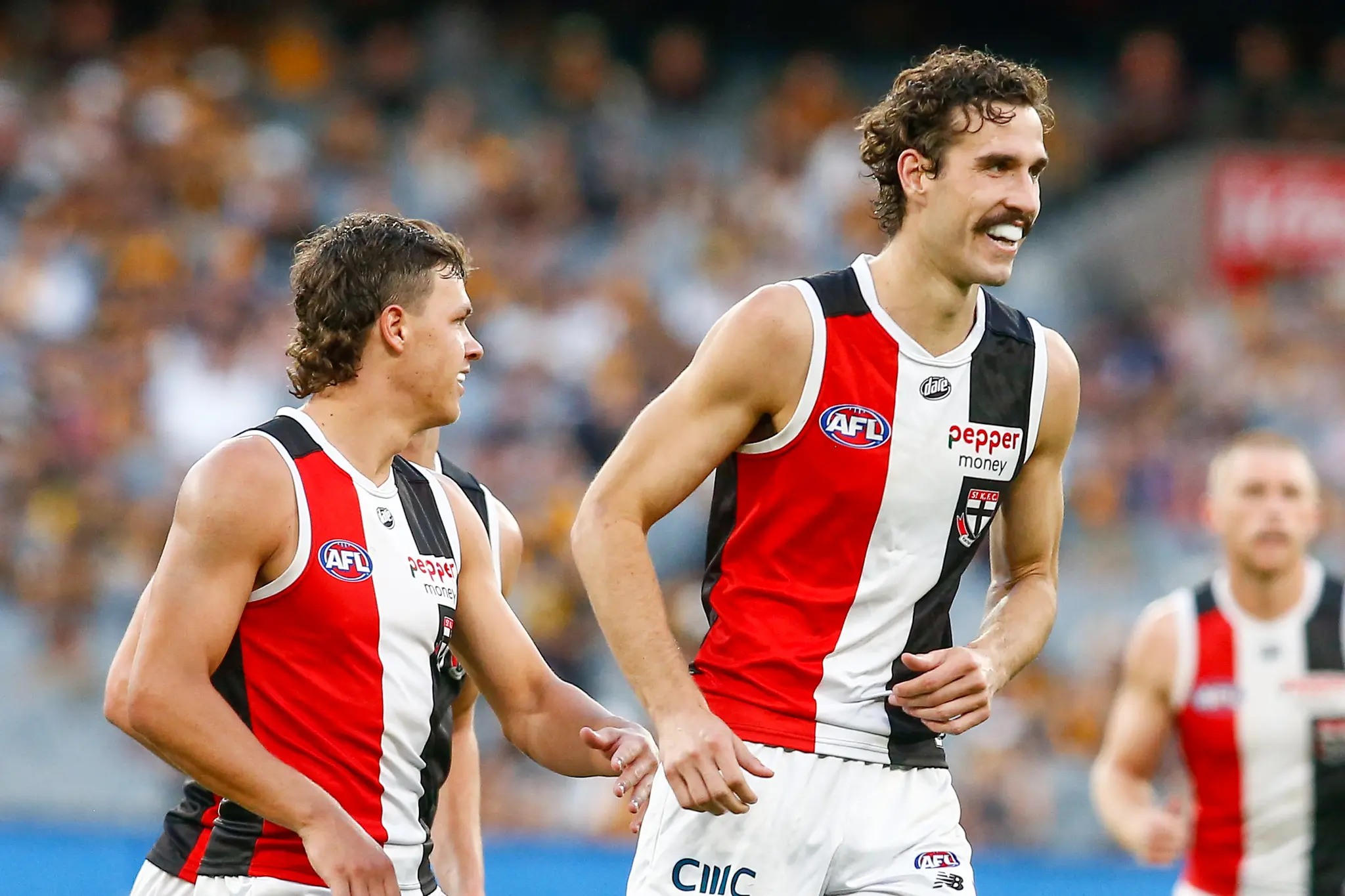 King is the focal point in St Kilda's attack, being the only genuine marking target alongside the lesser likes in Cooper Sharman, Mitch Owens and Anthony Caminiti, with the latter switched to defence at times.