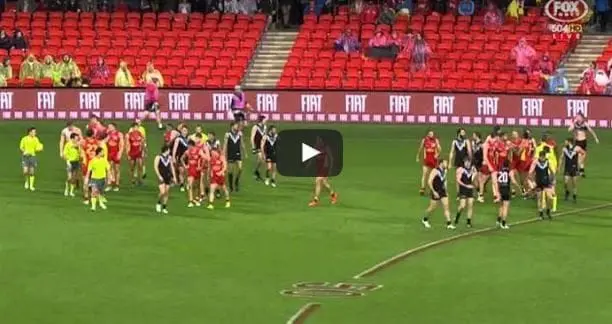 For those of you who missed it, here's Gold Coast and Port Adelaide's half time melee from Saturday night, in which Suns' forward Tom Lynch had his guernsey thrown into the crowd!