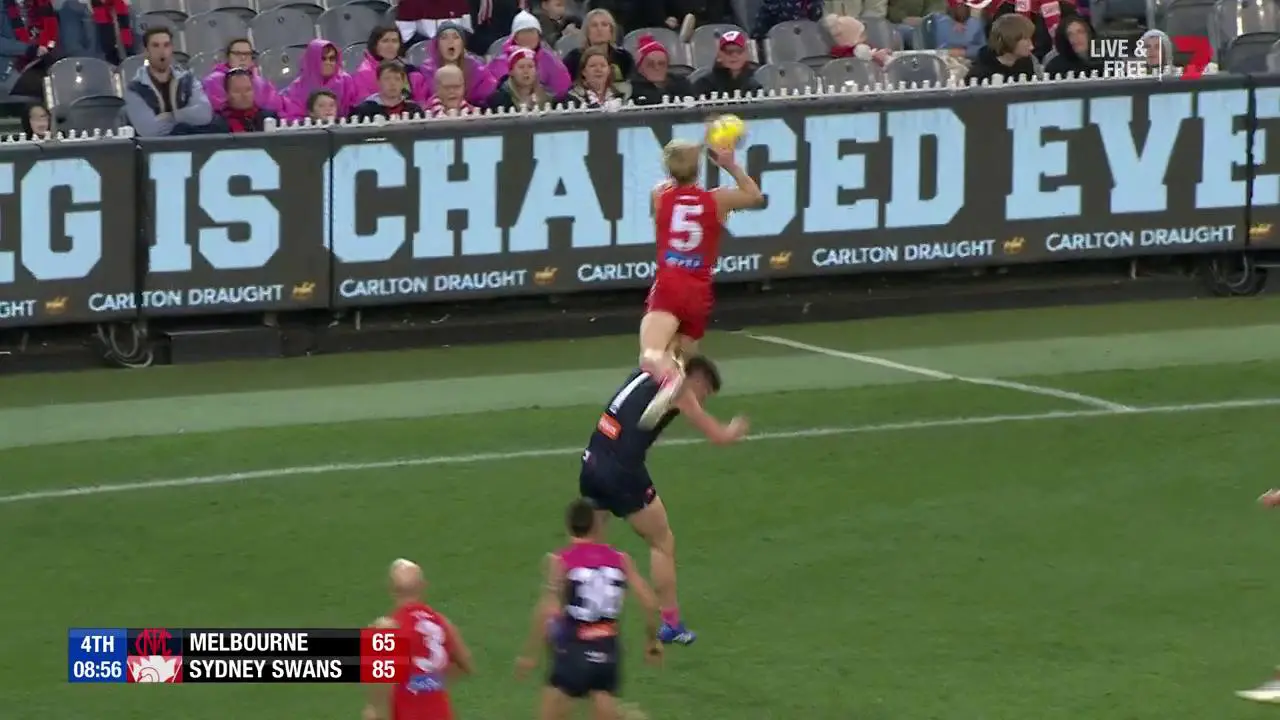 Swans utility Isaac Heeney flew to the heavens to take this huge mark during his side's clash with Melbourne at the MCG.