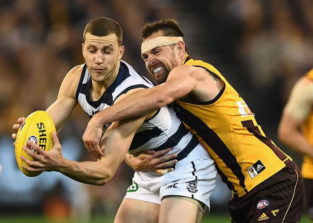Geelong's Sam Menegola and James Parsons have both been reported for seperate incidents involving former Hawthorn captain Luke Hodge.