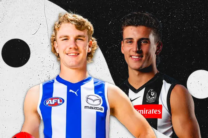 Before either the father-son Pie or the number one selection of last year’s National Draft had even walked through their respective doors at Olympic Park and Arden Street, the question of which prospect would have a greater career had already been dissected ad nauseum, with some crystal ball owners believing they had already landed on a solid answer.